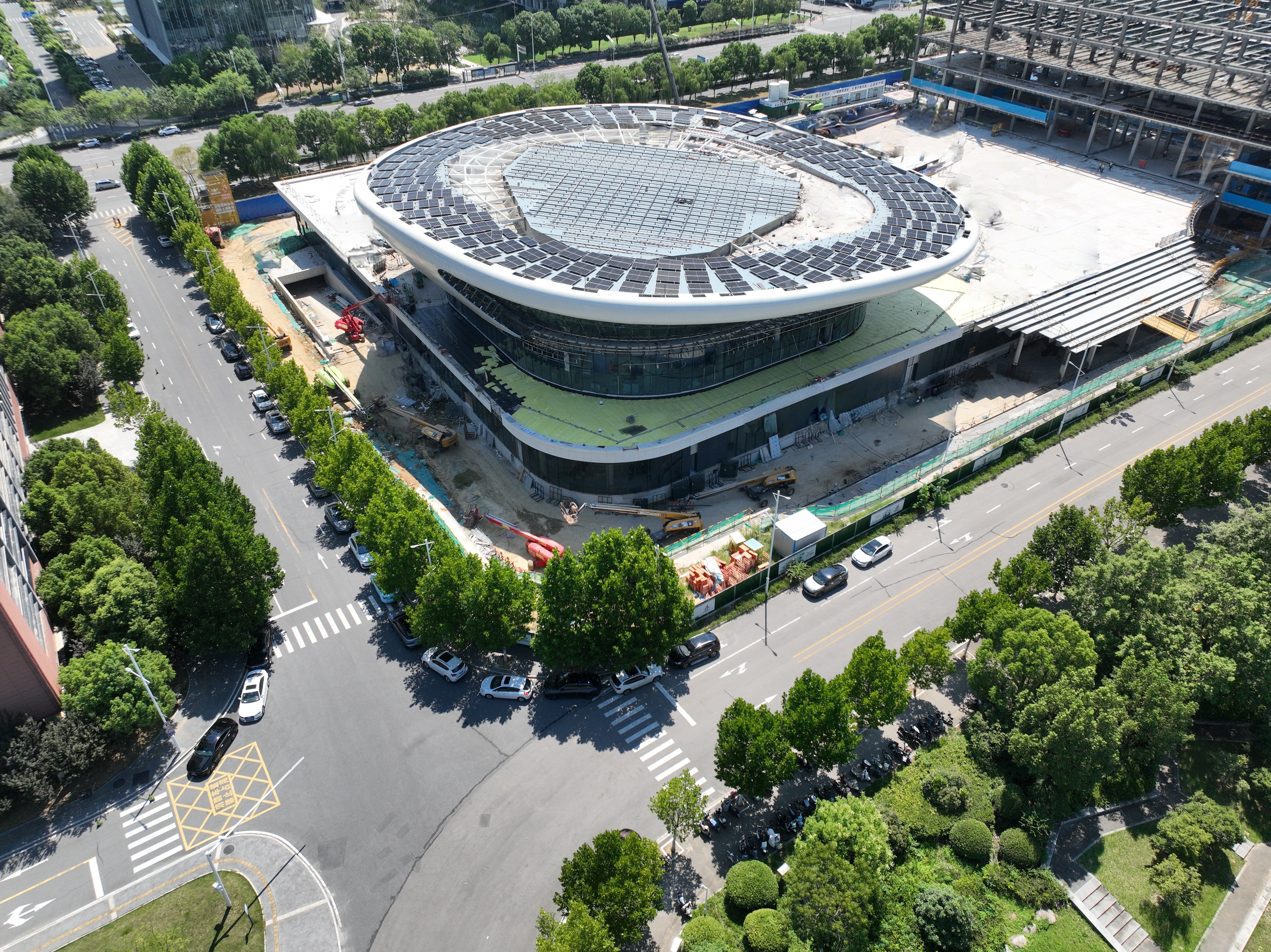 項(xiàng)目施工中面臨諸多挑戰(zhàn),報(bào)告廳處的雙曲面造型幕墻堪稱其中最難攻克的 “堡壘”。這個(gè)異型幕墻系統(tǒng)由1544塊雙曲鋁板、350塊扭曲玻璃以及近3萬(wàn)個(gè)坐標(biāo)點(diǎn)構(gòu)成,所有構(gòu)件均為雙曲異形且尺寸跨度大,對(duì)加工精度和安裝貼合度的要求極高。項(xiàng)目團(tuán)隊(duì)不僅要解決復(fù)雜的放線定位問(wèn)題,還要將復(fù)雜的圖紙精確還原到施工現(xiàn)場(chǎng),這無(wú)疑是一項(xiàng)艱巨的任務(wù)。